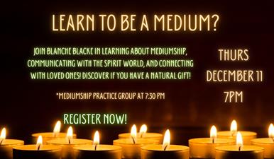 Join Blanche Blacke in learning about mediumship, communicating with the spirit world, and connecting with loved ones who have passed. Discover if you have a natural gift and take steps to develop your own unique connection. Or simply come for an opportunity to be with a dear departed and witness others experience theirs. While sometimes emotional, this is also playful process where we feel the depth of love. $39!